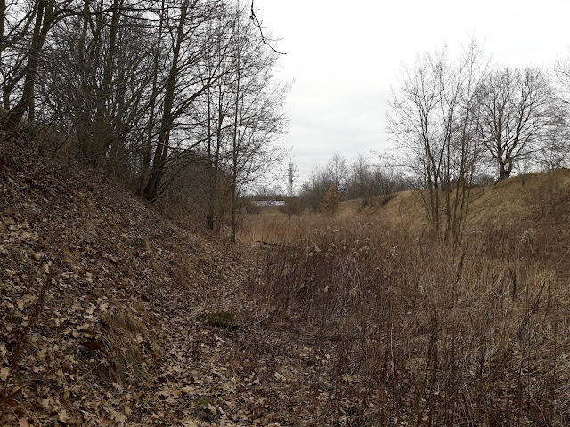 W dalszej, leśnej części poligonu znajdują się pozostałości okopów, słabo widoczne na zdjęciu.